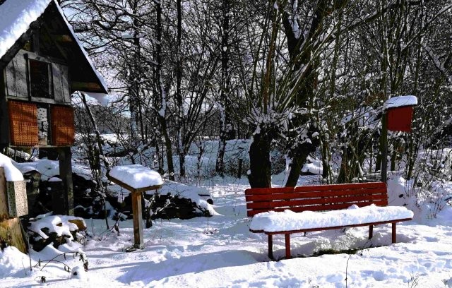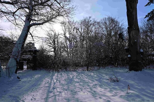 Weiß des Schnees im Kontrast zu den tiefschwarzen Wipfeln der Bäume, Sträucher, die gerade noch aus der Schneedecke ragten, das Schweigen, dass nur vom Rufeiner Krähe oder dem Flattern eines Rotkehlchens durchbrochen wurde, ein mittlerweile seltener Anblick.