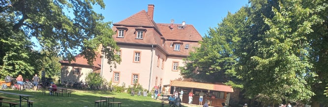 Am 23. August um 11 Uhr starteten wir an der NABU-Hütte. Mit acht Kindern, einigen Eltern und vier Betreuern fuhren wir am Kiessee vorbei, quer durch den Wald Richtung Heusenstamm, und erreichten nach etwa 45 Minuten das Hofgut.