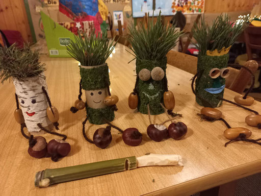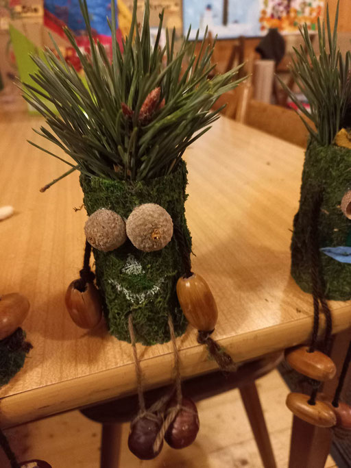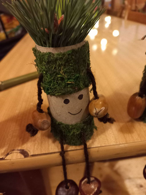 Unter dem Motto „Weihnachtsvorfreude – Schätze aus der Natur“ entstanden aus Klopapierrollen und Naturmaterialien liebevoll gestaltete Waldwichtel.
