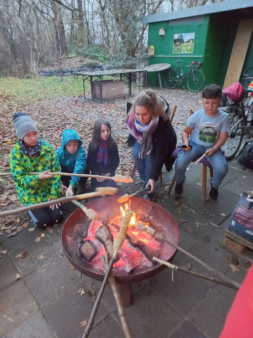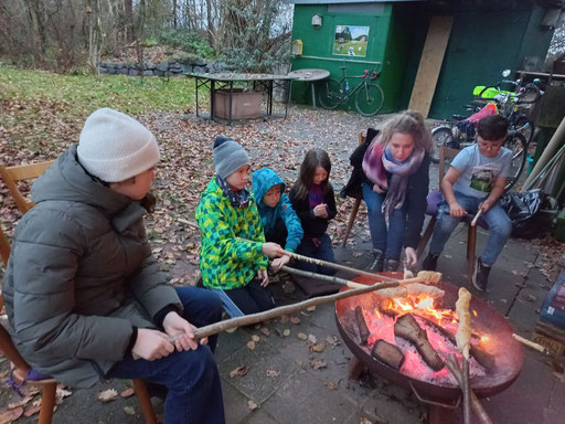 Trotz der winterlichen Kälte kamen Kinder und Betreuer am Samstagnachmittag zusammen, um sich gemeinsam auf die Weihnachtszeit einzustimmen. Die Feuerschale bot jederzeit die Möglichkeit, sich aufzuwärmen, während die Betreuerinnen mit vorbereitetem Stockbrotteig für das leibliche Wohl sorgten.