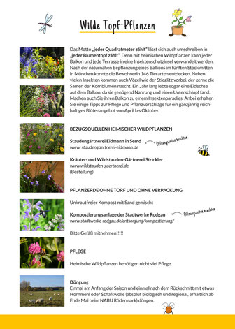 Der NABU Rödermark unterstützt Sie gern bei Ihren Aktivitäten und bietet, neben umfangreichen Informationen, Saatgut aus 100% heimischer Wildpflanzen an.