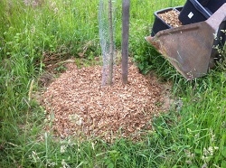 Ist der Boden auf diese Art gut gegossen hält sich die Bodenfeuchte relativ lang. Deckt man die Baumscheibe mit einer Mulchschicht, z.B. aus Holzhäcksel oder Stroh ab, sorgt man für eine deutlich längere Bodenfeuchte.