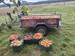 Bevor das Fest beginnt müssen die Äpfel von fleißigen Helfer und Helferinnen gesammelt werden