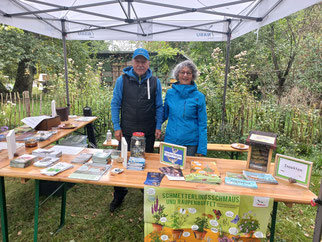 Im hinteren Teil des Gartens informierte Klaus Benedikt am Info-Stand die Besucher über vielfältige Themen wie naturnaher Garten, Artenschutz von Singvögeln und Eulen.