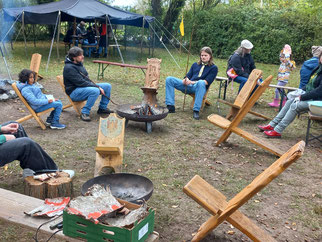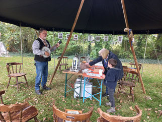 Die Pfadfinder luden ebenfalls zahlreiche Besucher auf ihr Gelände ein und sorgten mit frisch gebackenen Waffeln, herzhaftem Linseneintopf und dem beliebten Pfadfindertee „Chai“ für das leibliche Wohl. Bei verschiedenen Mitmachaktionen konnten Kinder und Jugendliche das Pfadfinderleben selbst ausprobieren: Buttons gestalten, ein Logo in Leder prägen, Lagerfeuer anzünden oder eine Kothe, das typische Pfadfinderzelt, aufstellen. Höhepunkt auf dem Gelände der Pfadfinder war ein Theaterstück, mit dem die Jungpfadfinder zeigten, wie man ohne Streichhölzer Feuer machen und wie schnell eine Kothe aufgebaut werden könne.